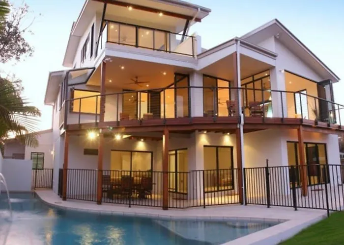 Located around a 10-minute drive from the Mooloolaba Marina, the 3-bedroom Ocean Views Villa Buddina offers a patio with views of the sea.